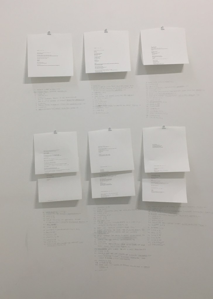 This exhibition was a visual diary linking finished and unfinished paintings with a collection of earlier drawings; lithographic monoprints made from the surfaces of paintings provided a third index for the presence of time in images and materials.