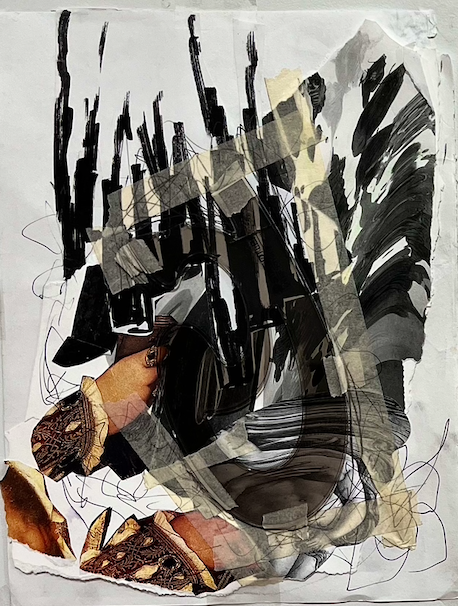 Acts of devotion and concealment, 2015, collage with French curve [approx 34 x 24 cm]