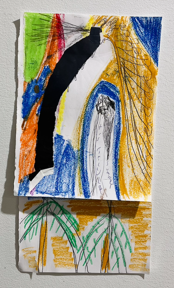 Two palms [with Mia Luna], 2016, paper collage with pen, tape and wax crayon [approx. 42 x 24 cm]